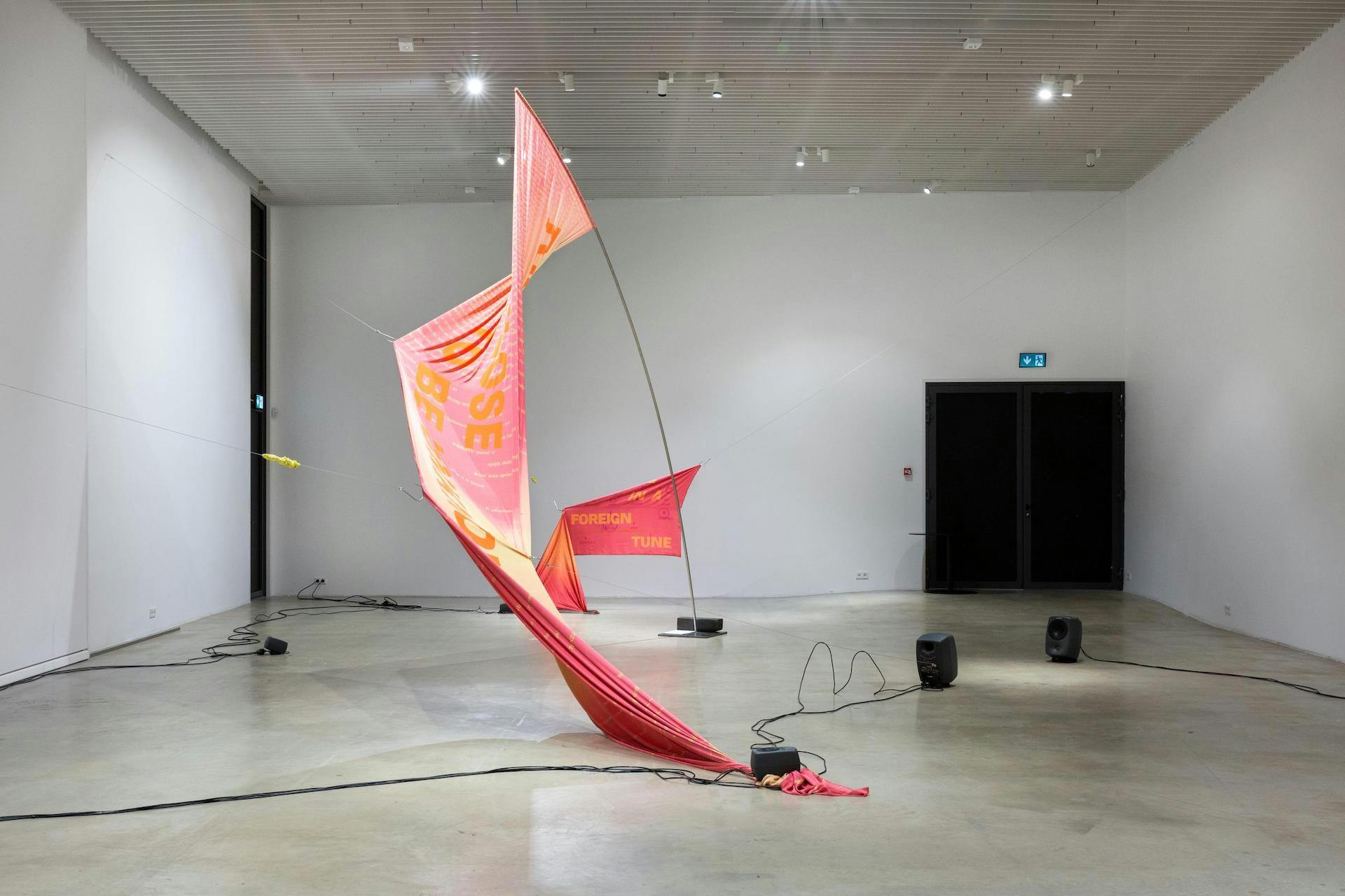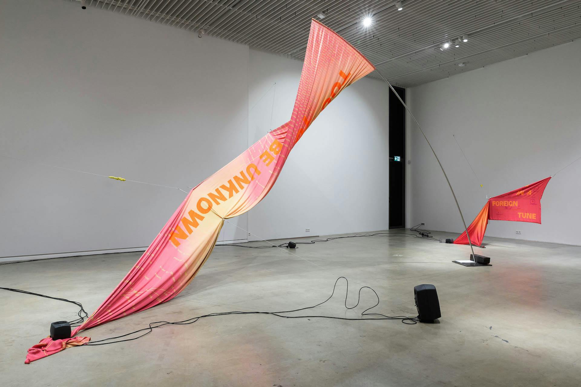 Referring to Gloria Anzaldúa’s notion of ‘wild tongue’ (Borderlands, 1987), the exhibition departs from the questions: How to tame a wild tongue? How to carry a language? The verbs ‘taming’ and ‘carrying’ imply certain dynamics of permission and restriction of movement, and suggest the entanglement between language and the body.