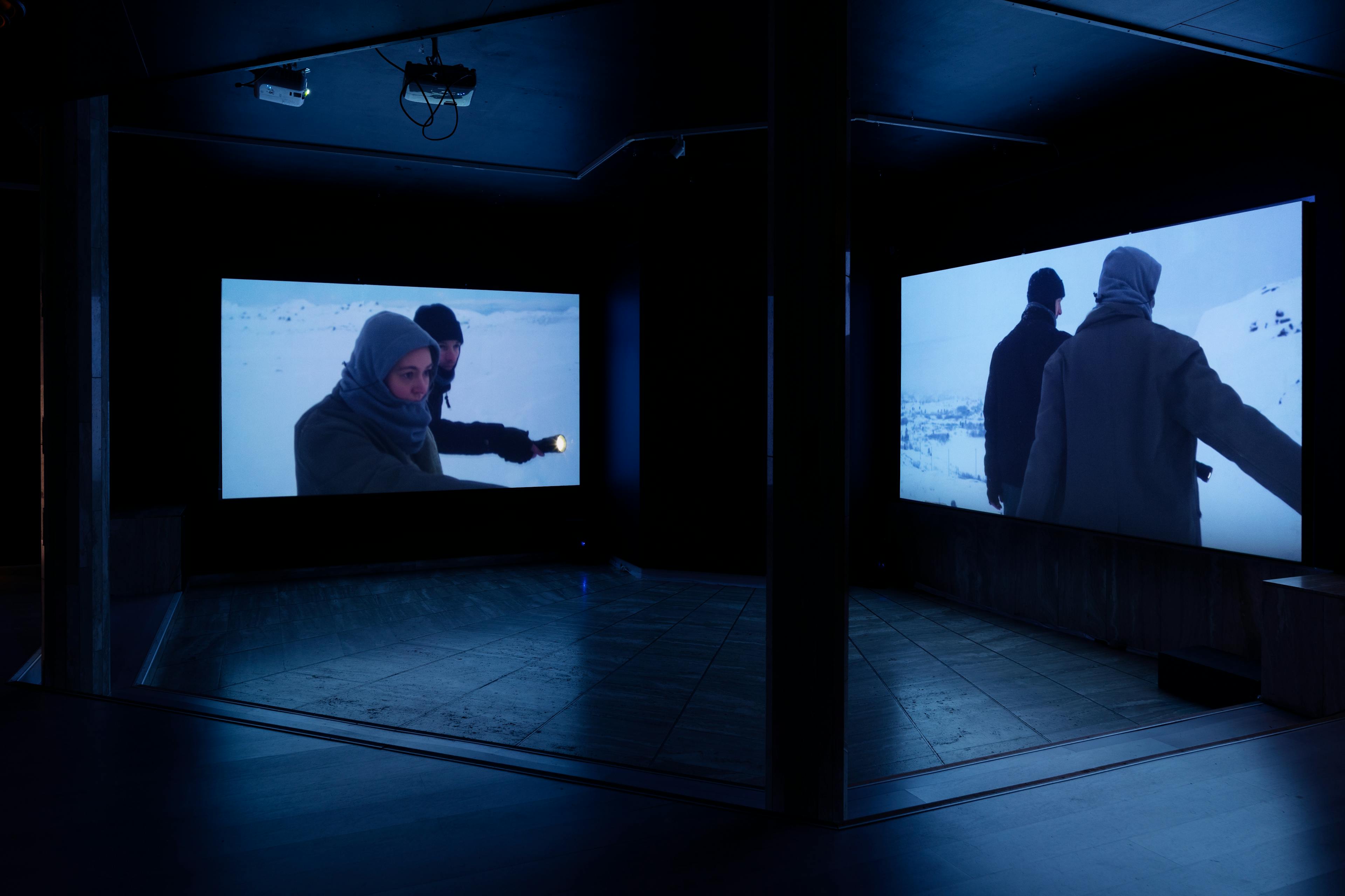 In preparing this exhibition, Hisse’s impetus has been Northern Norway’s importance for national security, the presence of the military and its imprint on the region. The video installation The New Theater of Operations, which also supplies the exhibition title, depicts four dancers performing choreographed movements in immediate proximity to military constructions on the island of Andøya and in Kirkenes. These choreographed movements are based on two very different sources. The first consists of weather signals as described in the handbook Rescue and Procedures in Theaters of Operations, published by the US Department of the Army (1971). The second consists of drama exercises described by the theatre director Augusto Boal in his book Theatre of the Oppressed (1974).